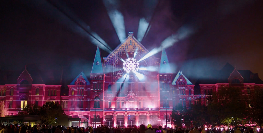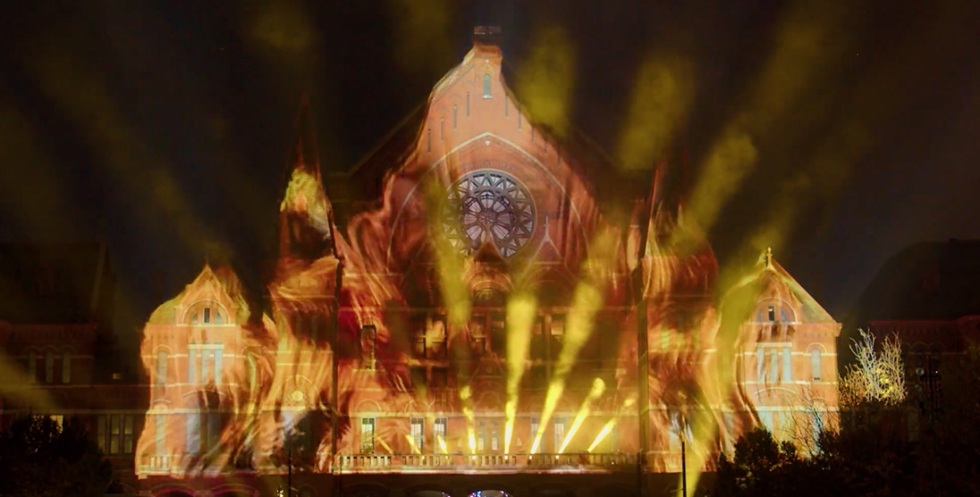 Lightborne partnered with BLINK Cincinnati to create THE ELISION, a projection-mapped spectacle that imagined what Cincinnati’s historic Music Hall would look like if music itself became a physical force moving through its architecture. Using original samples from the Cincinnati Symphony Orchestra, we composed a custom score and paired it with dynamic visuals that transformed the historic façade into a living, resonant canvas.