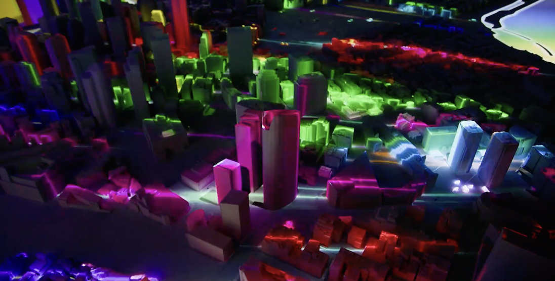 Designing and animating across an entire city required both creative vision and technical innovation. Because visitors experience the installation from every angle of the room, we could not rely on traditional anamorphic or perspective based projection mapping techniques. Instead, we developed a custom spatial mapping approach that ensured the visuals felt cohesive and spectacular from any vantage point, whether you were standing at the edge of the model or viewing it from across the space.