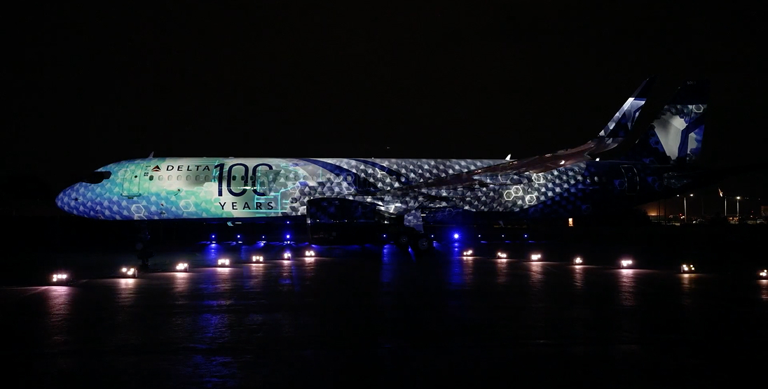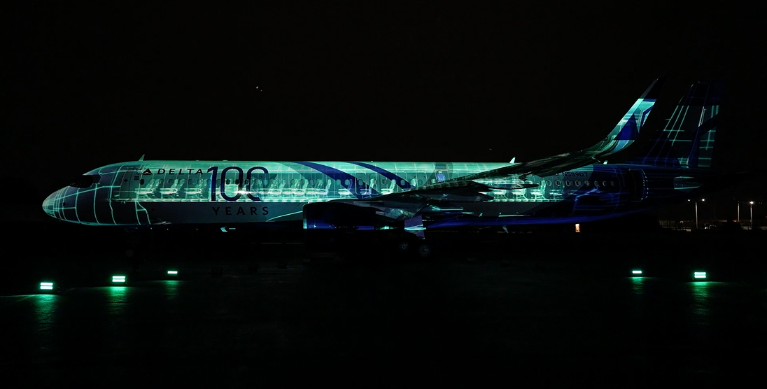 Happy 100th, Delta! To celebrate, Lightborne had the privilege of revealing the new centennial livery design to the public for the first time by creating a one-of-a-kind projection mapping show on the iconic a321 Neo airplane.